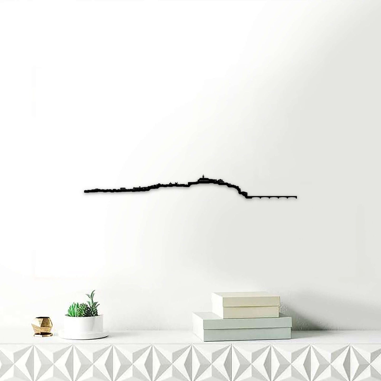 En la caja encontrarás todo lo necesario para disfrutar de tu skyline desde el primer momento: tu silueta del Skyline Coímbra en el color y tamaño elegidos, 6 puntos adhesivos para su montaje, una tarjeta con la guía visual de instalación y un código QR para ver vídeos de colocación paso a paso.