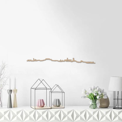 En la caja encontrarás todo lo necesario para disfrutar de tu skyline desde el primer momento: tu silueta del Skyline Brihuega en el color y tamaño elegidos, 6 puntos adhesivos para su montaje, una tarjeta con la guía visual de instalación y un código QR para ver vídeos de colocación paso a paso.