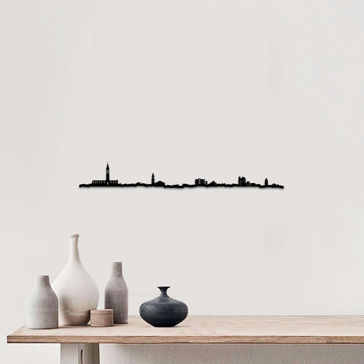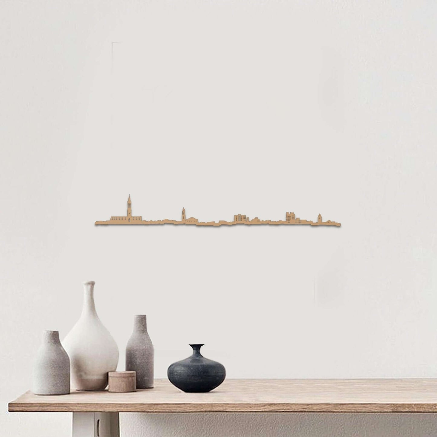En la caja encontrarás todo lo necesario para disfrutar de tu skyline desde el primer momento: tu silueta del Skyline Valls en el color y tamaño elegidos, 6 puntos adhesivos para su montaje, una tarjeta con la guía visual de instalación y un código QR para ver vídeos de colocación paso a paso.