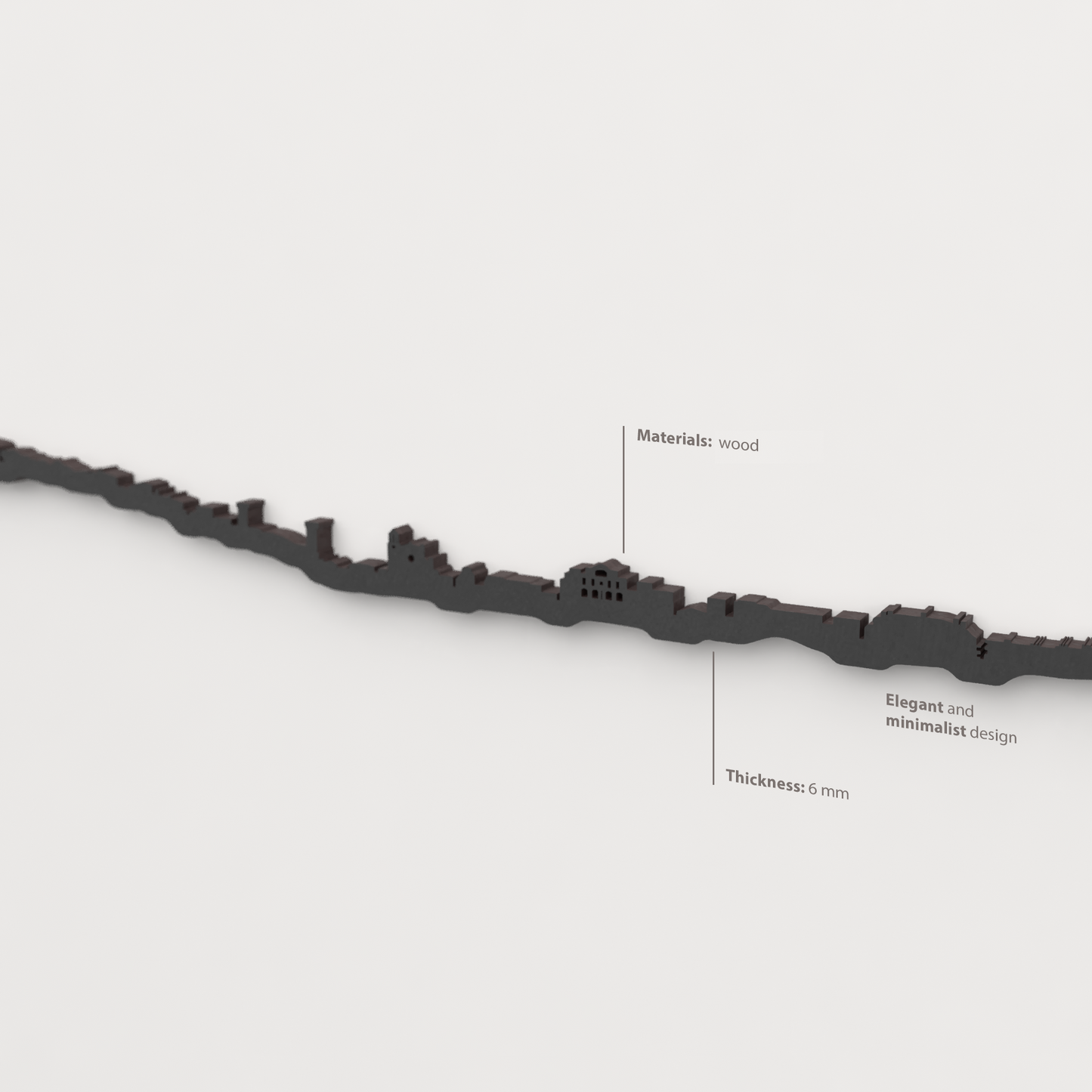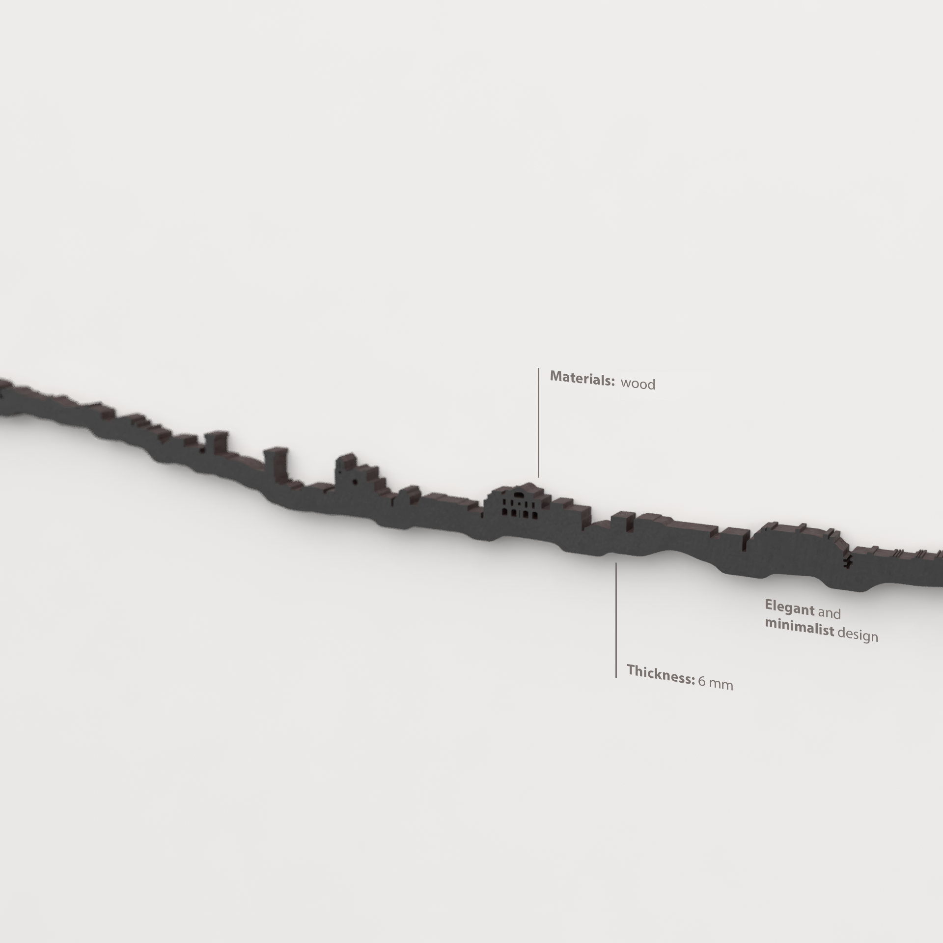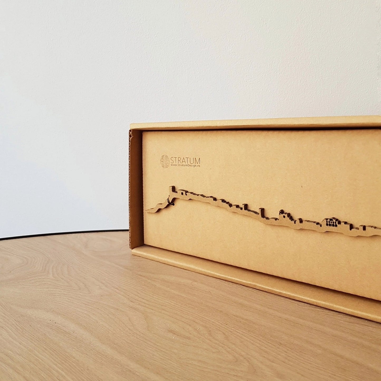 Perfil del Skyline de Tossa de Mar realizado artesanalmente, cortado con láser de precisión, pulido y pintado/barnizado a mano para dejar un producto de gran calidad y diseño.