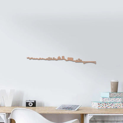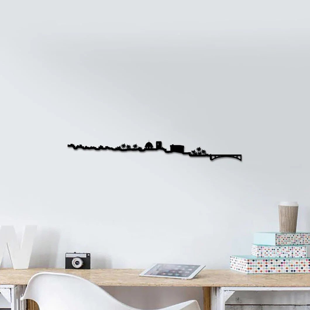 En la caja encontrarás todo lo necesario para disfrutar de tu skyline desde el primer momento: tu silueta del Skyline Elche en el color y tamaño elegidos, 6 puntos adhesivos para su montaje, una tarjeta con la guía visual de instalación y un código QR para ver vídeos de colocación paso a paso.